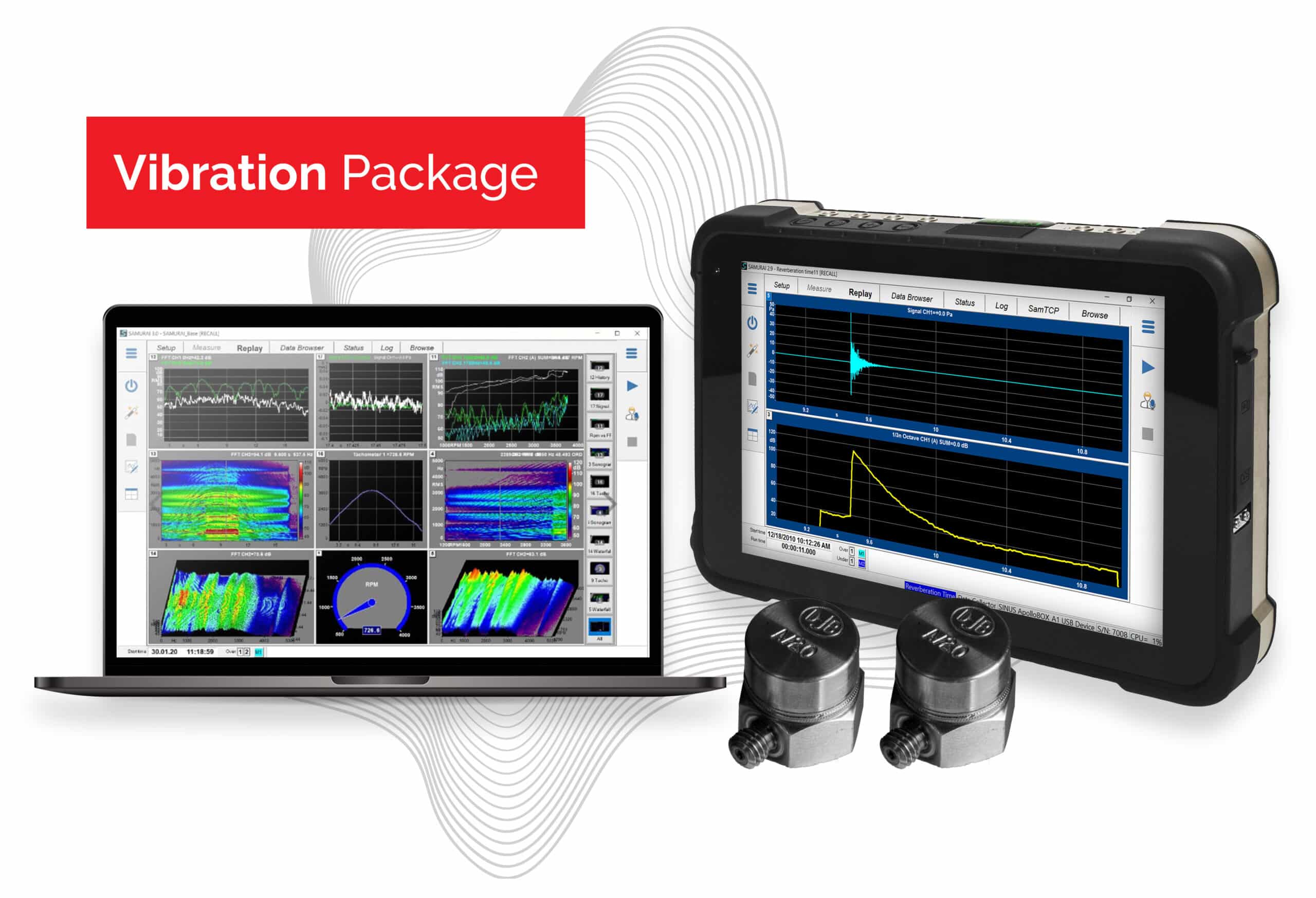 Sinus Samurai software offering total modularity and huge scope with module options which include: Sound Power, Sound Intensity, Building Acoustics Building Vibration, Human Vibration, Order Tracking, Balancing Impulse Hammer FRF generation, and more.