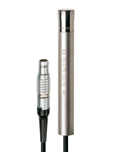 The 1/2 ”measuring microphone MM 203 opens up the possibility of using a high quality, externally polarized measuring microphone capsule MK 221 on measuring systems with 7-pin. LEMO connection to be used.