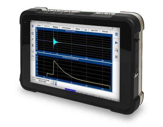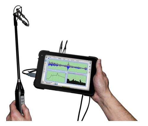 NoisePAD is a class of 4-channel real-time analyser for noise & vibration. The combination of a robust 8” tablet and analyser meets the standard MIL 810.