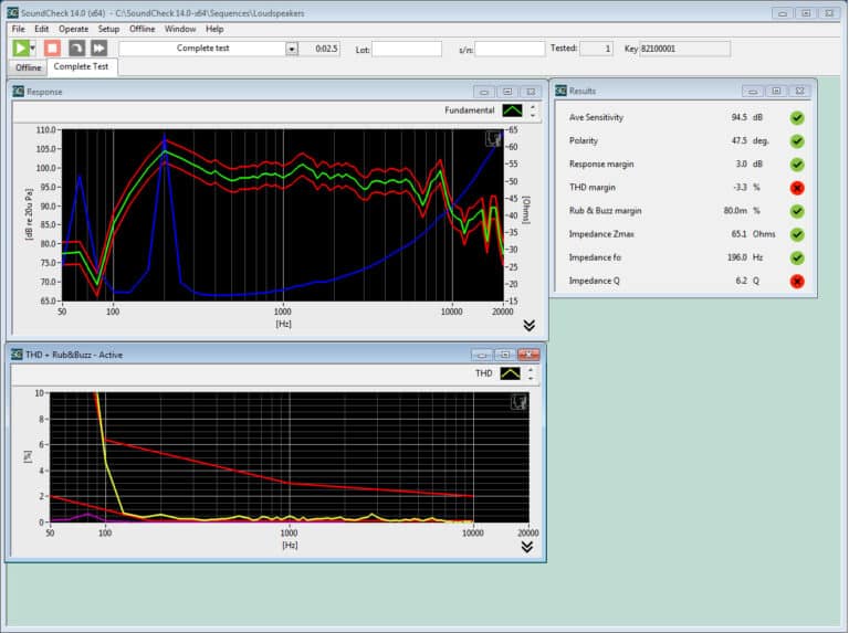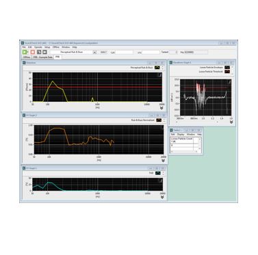 No single distortion measurement can characterize a device or detect all possible manufacturing defects, so SoundCheck includes a complete set of distortion algorithms to suit every requirement. These range from traditional measurements like THD, Rub & Buzz and Intermodulation to cutting edge perceptual distortion metrics. Many of these measurements can be calculated from a single sine sweep, providing superior accuracy alongside minimal test times. Distortion measurements include Harmonic Distortion (THD, THD+N), Rub & Buzz, Loose Particle Detection, Intermodulation Distortion, Non-coherent Distortion and Perceptual Distortion Measurement