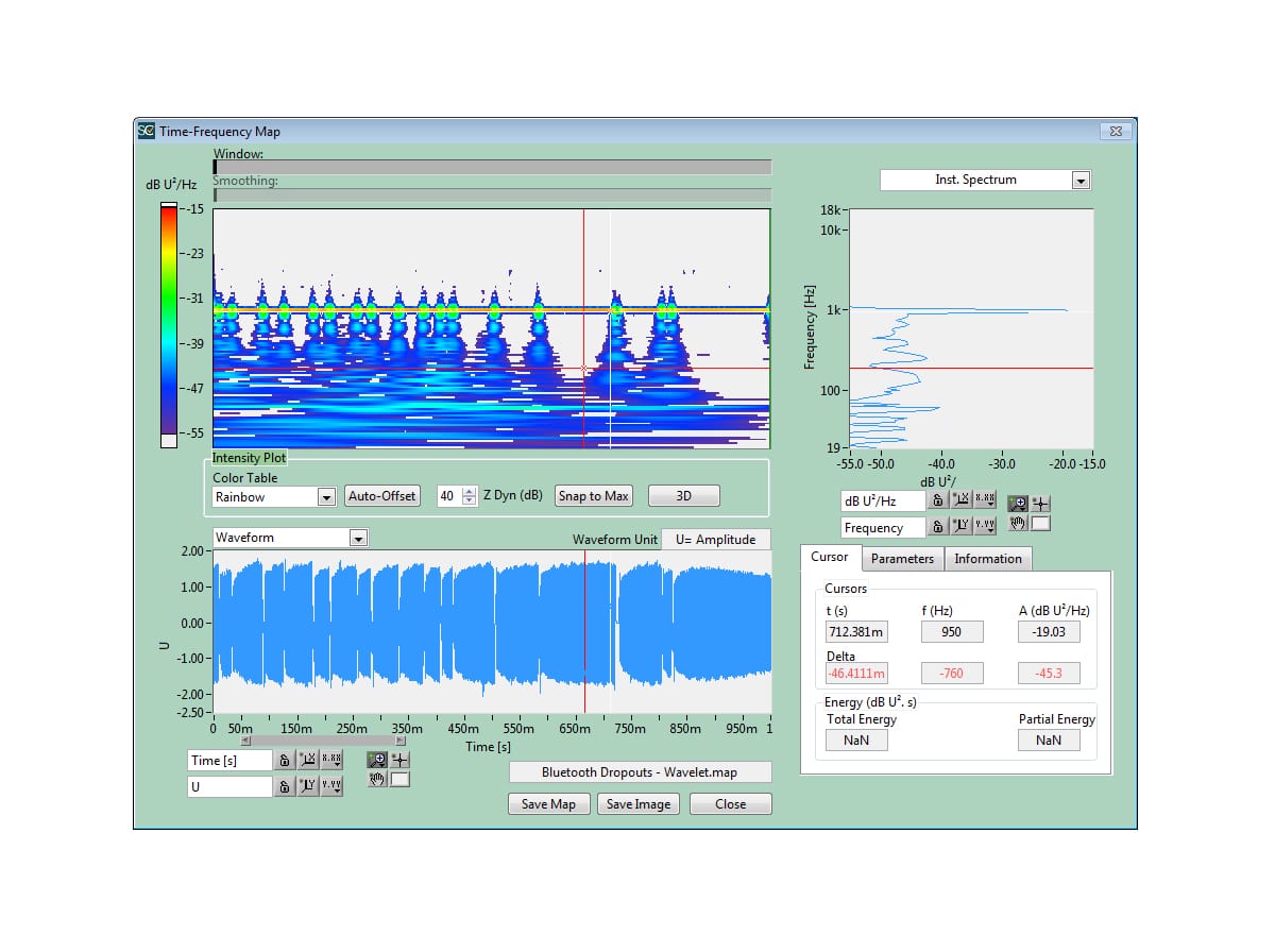Detailed signal analysis is carried out simultaneously in both the time and frequency domain, which is ideal for impulse response analysis and detection of loose particles and Rub & Buzz in loudspeakers. Time-frequency analyses are also valuable for identification of transient effects such as drop out in digital devices including VoIP and Bluetooth headsets. SoundCheck’s Time-Frequency analysis options include Waterfall plots /Cumulative spectral decay (CSD), Wigner-Ville, Short term fourier transform (STFT) and Wavelet analyses.